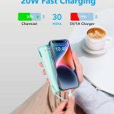 Introducing the Charmast Portable Charger with Built-in Cables and Wall Plug, a versatile and powerful 20000mAh 20W USB C Power Bank designed to keep your devices charged on the go. This fast charging battery pack is compatible with a wide range of devices including iPhone 16/15/14/13 Series, Samsung, Google, iPad, and more.