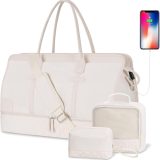 Introducing the Weekender Overnight Bags for Women, the ultimate travel companion for the modern woman on the go. This 3-piece set includes a Large Travel Duffle Bag with a convenient Shoe Compartment and Wet Pocket, a versatile Carry On Tote Bag, and a practical Gym Duffel Bag with Toiletry Bags.